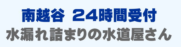 南越谷で早くて安い水道修理業者をお探しの方は当店までお問い合わせください。蛇口の水漏れ、トイレつまり、排水口の溢れ、パイプ修理など、南越谷での水道トラブルは最短15分到着です。南越谷は24時間受付。南越谷エリアは見積もり無料、出張費0円でスタッフがかけつけます。南越谷にお住まいの方で水廻りのお困りごとはご相談ください。